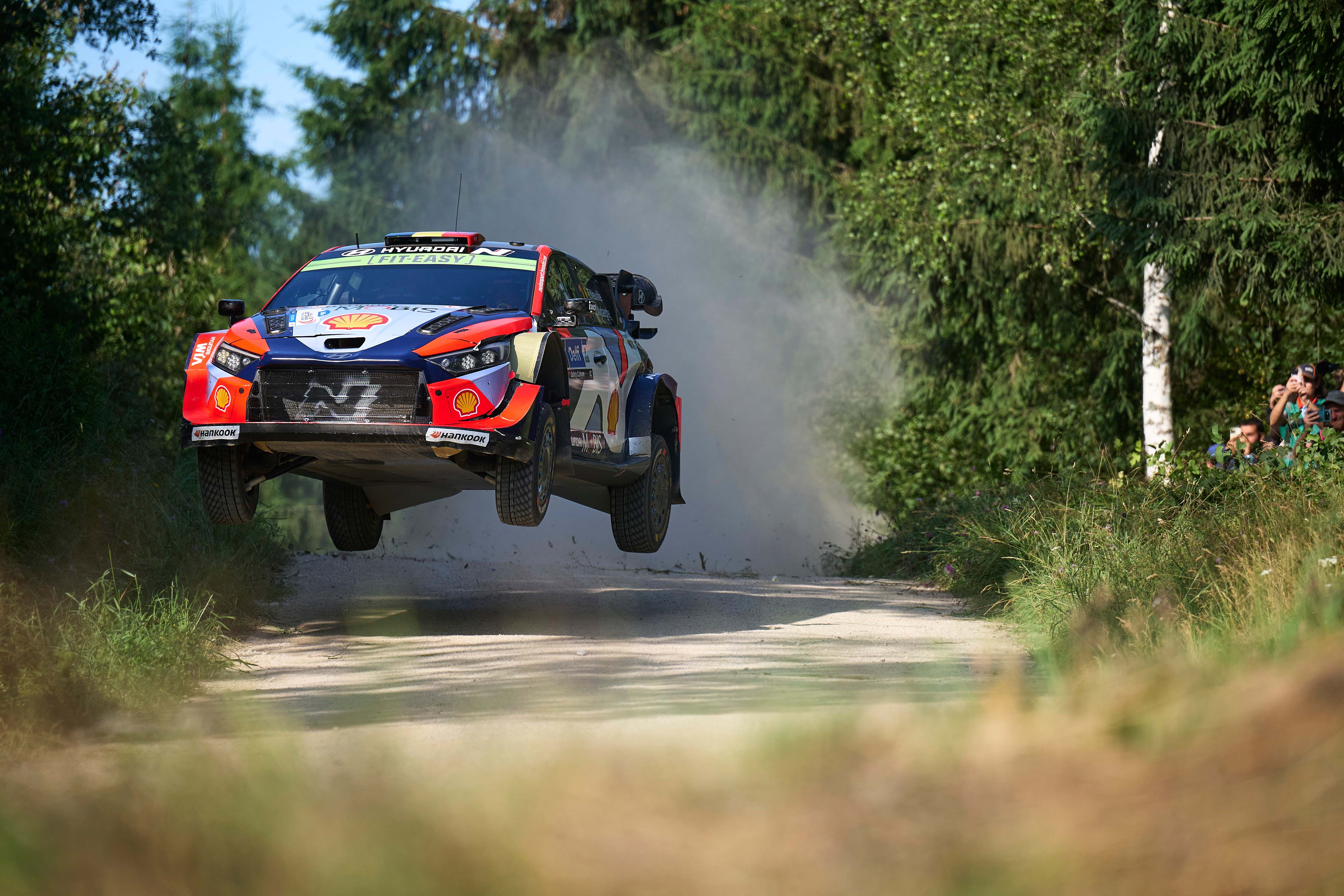 Lining up behind Solberg are no fewer than three world champions, led by 2019 title-winner Ott Tänak. The local favourite, driving a Hyundai i20 N Rally1, is locked in a fierce duel with team-mate Thierry Neuville for the runner-up spot. The pair traded positions six times throughout the day, with Tänak ending just 4.0sec ahead of the Belgian.